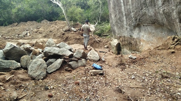 இதன் போது பெரிய கல்பாறை ஒன்றைக் கல்லுடைக்கும் கொம்பஸ் இயந்திரம் மூலம் உடைத்துப் புதையல் தோண்டலில் ஈடுபட்டுக் கொண்டிருந்த 4 பேரைக் கைது செய்ததுடன், அங்கிருந்து ஜெனறேற்றர் ஒன்றும், கல்லுடைக்கும் கொம்பஸ் இயந்திரம், உட்படப் பல உபகரணங்களையும் 3 மோட்டார் சைக்கிள்களையும் மீட்டுள்ளனர்.