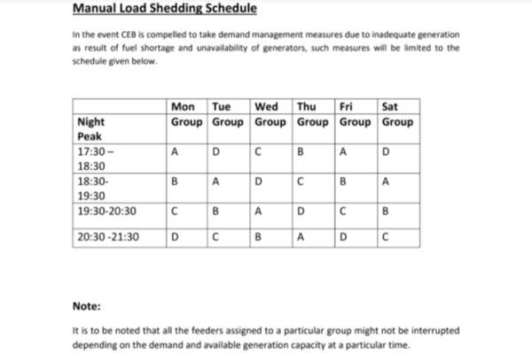 இதன் பின்னணியிலேயே, திட்டமிடப்பட்ட மின்வெட்டு தொடர்பான அட்டவணையை இலங்கை மின்சார சபை (CEB) தனது உத்தியோகபூர்வ இணையத்தளத்தில் வெளியிட்டுள்ளது.