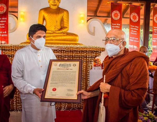 கடந்த 11ஆம் திகதி சமூக, கலாசார மற்றும் சமய ரீதியாக எதிர்க்கட்சித் தலைவர் சஜித் பிரேமதாசவினால் மேற்கொள்ளப்படுகின்ற தொடர்ச்சியான சேவைகள் விசேடமாக பாராட்டு அதனை கௌரவிக்கும் வகையில் சிறிலங்கா ராமன்ய மகா நிகாயவின் உயரிய விருதான “சாசன கீர்த்தி தேசாபிமானி சிறிலங்கா ஜனரஞ்சன” கௌரவ நாமம் வழங்கப்பட்டுள்ளது.