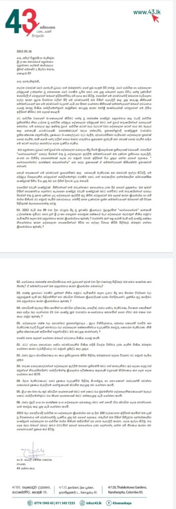 அத்துடன் “கோட்ட கோ கம” தாக்குதல் மற்றும் ஈஸ்டர் தாக்குதல் என்பவற்றுக்கு எதிரான சட்ட நடவடிக்கை உள்ளிட்ட விடயங்களை உள்ளடக்கி கேள்விகள் அமைந்துள்ளதாக தெரியவருகிறது.