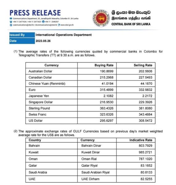 இலங்கை மத்திய வங்கி விடுத்துள்ள அறிக்கையில் குறித்த விடயம் தெரிவிக்கப்பட்டுள்ளது.