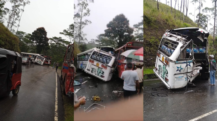 வட்டவளை பொலிஸ் பிரிவுக்கு உட்பட்ட பகுதியில் ஹட்டனிலிருந்து கண்டி நோக்கி சென்ற அரச பேருந்து ஒன்றும் கொழும்பிலிருந்து ஹட்டன் நோக்கி சென்ற தனியார் பேருந்து ஒன்றும் விபத்துக்குள்ளாகின.