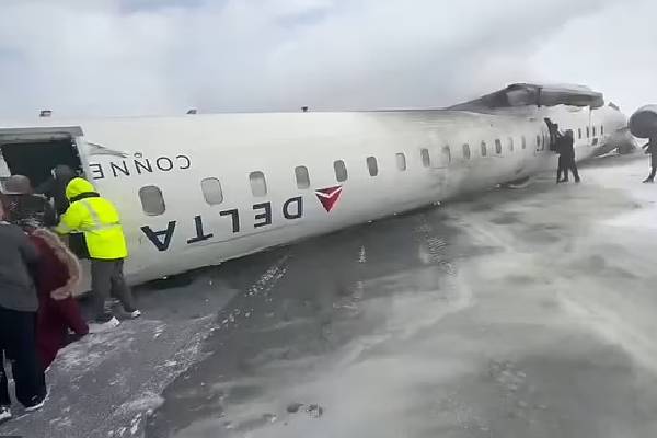 80 பேர்களுடன் பயணப்பட்ட டெல்டா ஏர்லைன்ஸ் பயணிகள் விமானம் ரொறன்ரோ விமான நிலையத்தில் விபத்துக்குள்ளானது.
