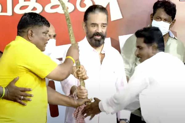 வாள் கொண்டு வந்த தொண்டரை பார்த்து கமல்ஹாசன் மிகவும் கோபமடைந்த வீடியோ சமூக வலைத்தளங்களில் வைரலாகி வருகிறது.