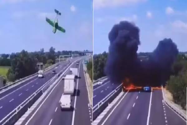 இத்தாலியின் வடக்குப் பகுதியில் உள்ள ப்ரெஷியா நகரில் சிறிய ரக விமானம் ஒன்று சென்று கொண்டிருந்தது. இந்த ஃப்ரீசியா ஆர்.ஜி. மாடல் இலகுரக விமானம் கட்டுப்பாட்டை இழந்து சாலையில் விழுந்ததால் தீ விபத்து ஏற்பட்டது.