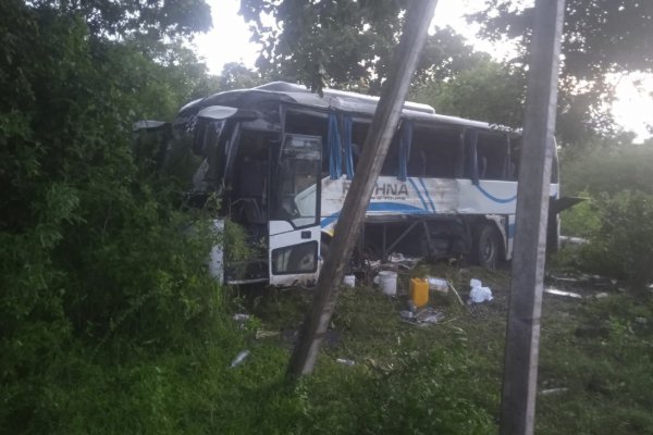 பேருந்து கட்டுப்பாட்டை இழந்து வீதியை விட்டு விலகி விபத்துக்குள்ளாகியுள்ளதாக தெரிவிக்கப்படுகிறது.